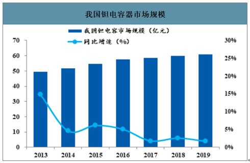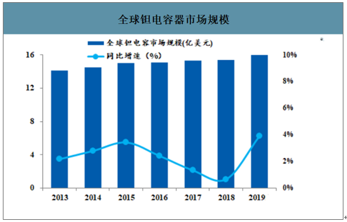 2018年全球鉭電解電容市場規(guī)模超過15億美元,2019年全球市場規(guī)模將接近16億美元;2018年我國鉭電解電容市場規(guī)模首次突破60億元,2019年我國市場規(guī)模將在61億元以上。