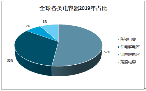 全球電容器市場以陶瓷電容為主,占據(jù)市場一半份額。2019年陶瓷電容、鋁電解電容、鉭電容、薄膜電容全球市場規(guī)模將分別達到114億美元、72億美元、16億美元及18億美元,較2018年分別增長3.82%、3.77%、1.31%及1.67%。陶瓷電容因其廣泛的應(yīng)用及較高的性價比,在電容器市場中占據(jù)半壁江山。