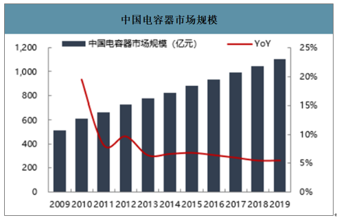 中國電容器市場規(guī)模增長的速度持續(xù)快于全球市場規(guī)模增速